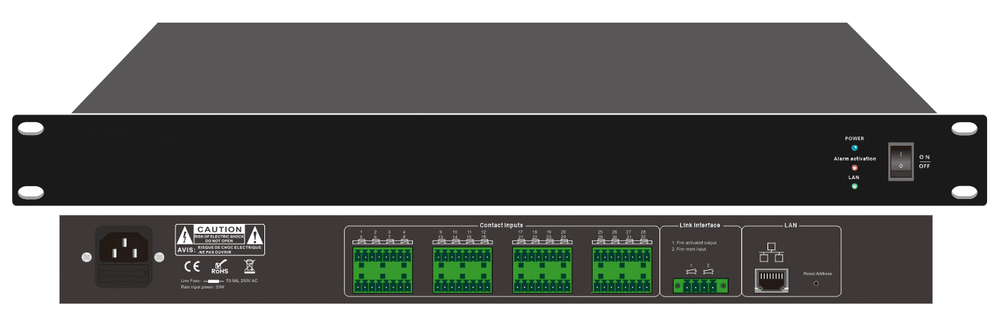 - Tín hiệu từ trung tâm báo cháy sẽ được gửi qua panel này đến máy chủ thông qua cổng LAN RJ45.